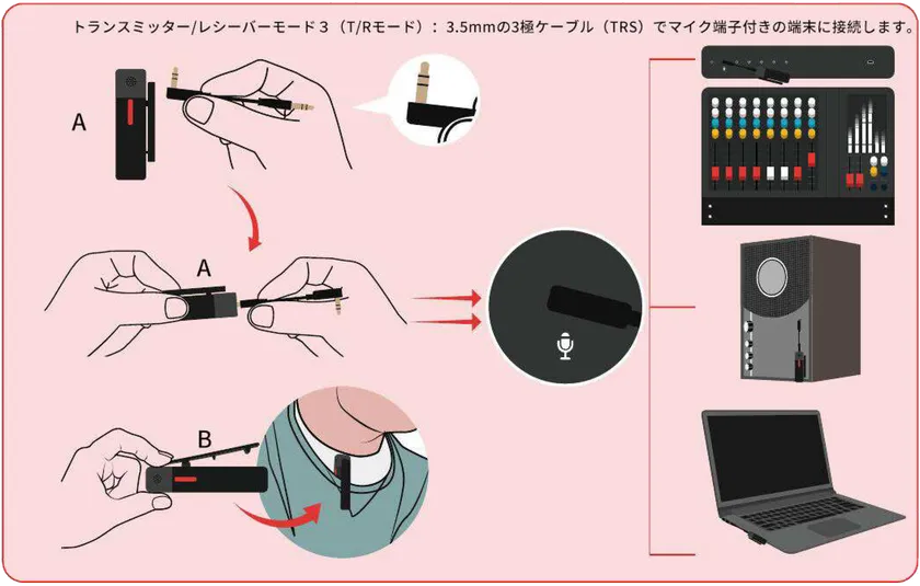 3. T/Rモード:(スマートマイク+を2個使用)