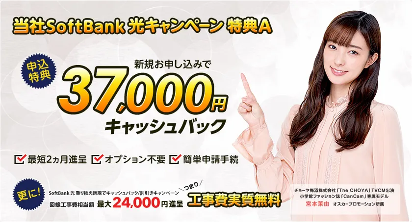 ■SoftBank光 乗り換え新規でキャッシュバック/割引きキャンペーン