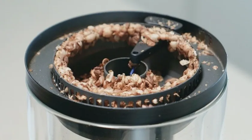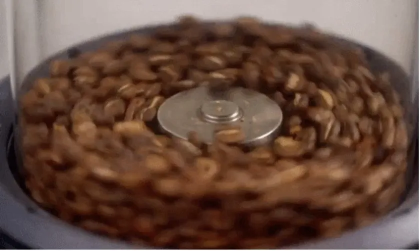 【Wake Up】のチャンバーは二重の耐熱強化ガラス製。いつでも中の様子が見えるので、生豆の焙煎具合を目視で確認しながら調整できます。これは、なかなか楽しい時間です。また撹拌機がコーヒー豆をゆっくり回し、徐々に豆の色が変わっていく様はまさにエンターテインメント。さらに生豆の茶色が濃くなってくると「パチ、パチ」と爆(は)ぜる音も聞こえてきて「焙煎している」という醍醐味を自分の目と耳で存分に楽しめます。