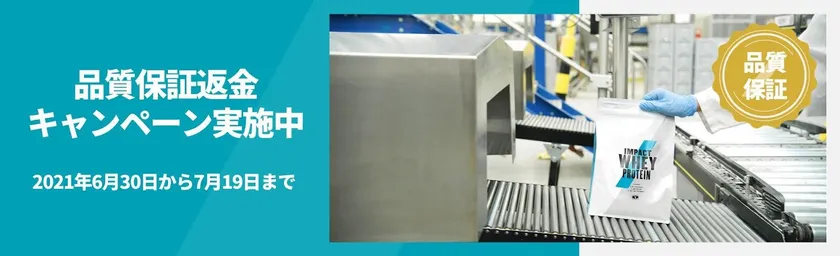 また、クオリティビデオの公開に合わせて「マイプロテイン品質保証返金」キャンペーンを実施。ご注文いただいた製品にご満足いただけなかった場合に、商品代金の全額または一部を返金します。