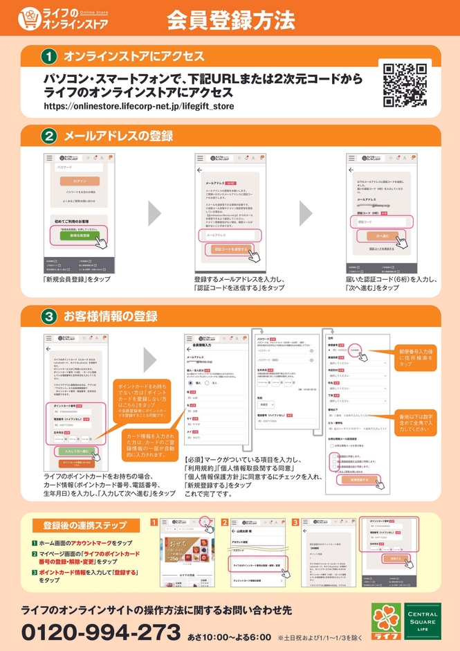 キャンペーンの詳細・ライフのオンラインストアへの登録方法は下記画像をご確認ください。
