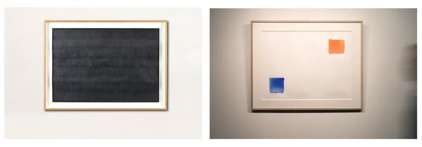 続いては同作家のLOT103「Untitled, 2004」、紙にグワッシュで描かれた鮮やかなオレンジと青色が美しい作品です。
