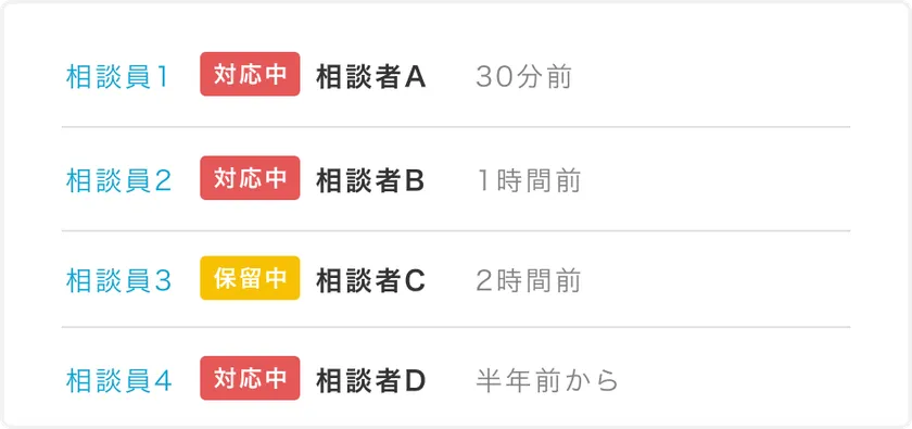 管理者はダッシュボード画面から各オペレータの相談状況などを確認できます