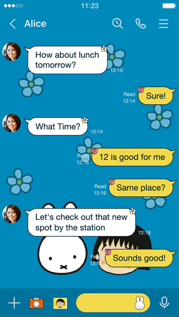 LINE着せかえ「maruko meets miffy」では、これまでのコラボレーションアートに新たなアートが加わりさらにパワーアップ。ディック・ブルーナ作の絵本シリーズやさくらももこ作品に登場するアヒル・ネコなどの動物やえんぴつ・虫眼鏡などのアイテムを随所にちりばめました。その他にも、2人の後ろ姿のアイコンなど、見ているだけでほのぼのとした気持ちになるようなLINE着せかえです。