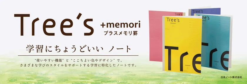スタンダードノートのブランド「Tree's」から 学習にちょうどいいノート『Tree's プラスメモリ罫』7/7発売