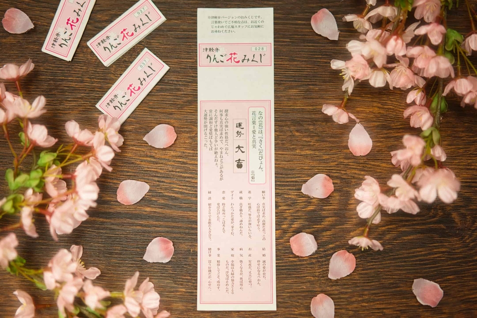 料金:津軽弁の花みくじ 100円(税別)/りんごの花絵馬 無料
