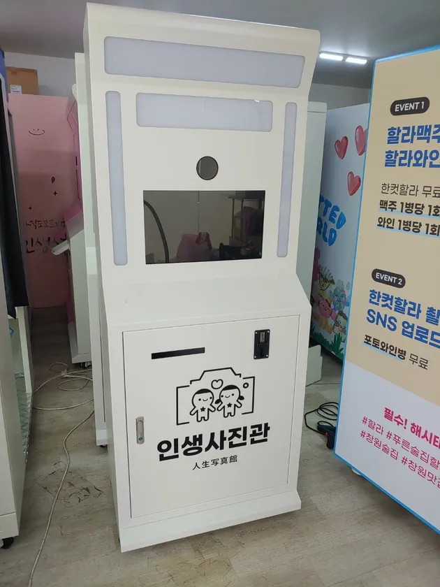 韓国から輸入した春夏秋冬ビルのために作られた1台150万円の最新プリクラの機械を設置。撮影ブースは3ヶ所あります。フロア両端には化粧直しなどができるパウダールームを設置しそこでも自由に撮影していただけます。