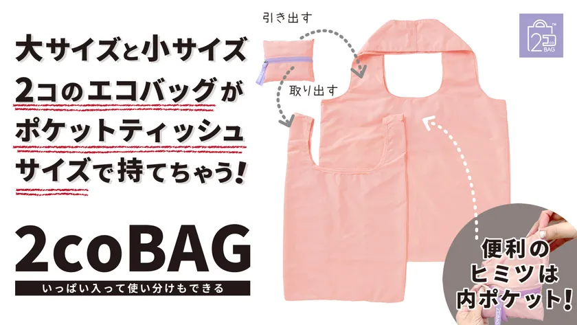 もうエコバッグで悩まない!エコバッグ2種類を コンパクトに持ち歩ける「2coBAG」がMakuakeにて発売!