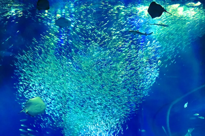 約15,000匹のイワシたちが「出会いの海の大水槽」で光とBGMとともに躍動するパフォーマンス「IWASHI LIFE(イワシライフ)」を夏期特別バージョンで実施します。笠間市出身のアーティスト・川嶋志乃舞さんが制作した楽曲「Sardines Adventure(サーディンズアドベンチャー)」を使用し、夏らしく爽やかなBGMとイワシたちの力強さが重なり合った、大迫力の演出をお楽しみください。