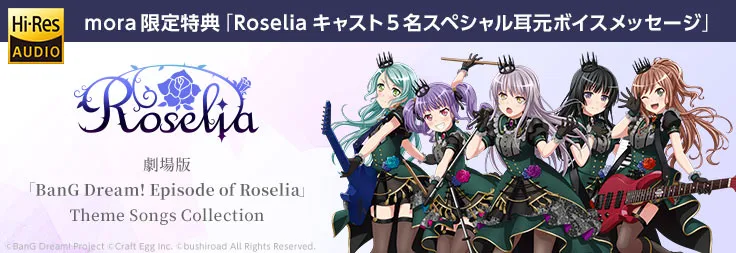 劇場版「BanGDream! Episode of Roselia」のオープニング・エンディングを集めたミニAlbum『劇場版「BanGDream! Episode of Roselia」ThemeSongs Collection』が配信スタート!期間中にmoraでハイレゾまとめ購入いただいた方全員に”Roseliaキャスト5名スペシャル耳元ボイスメッセージ”をプレゼントする豪華特典が決定いたしました。