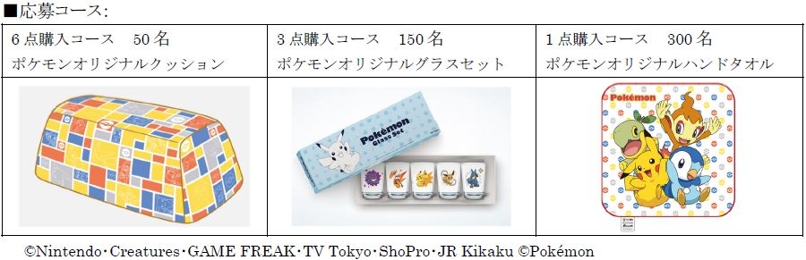 ・3点購入コース「ポケモンオリジナルグラスセット」 当選本数 :150名様