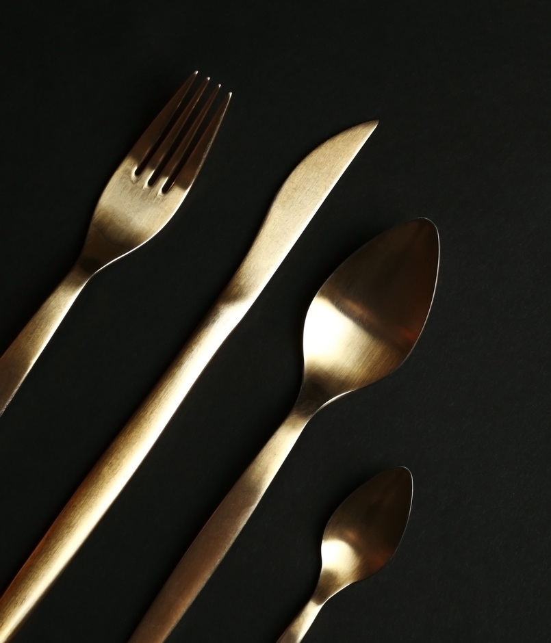テーブルにはピンクゴールドに輝く特別なカトラリーをご用意。特製BOXとともにギフトとしてお持ち帰りいただけます。