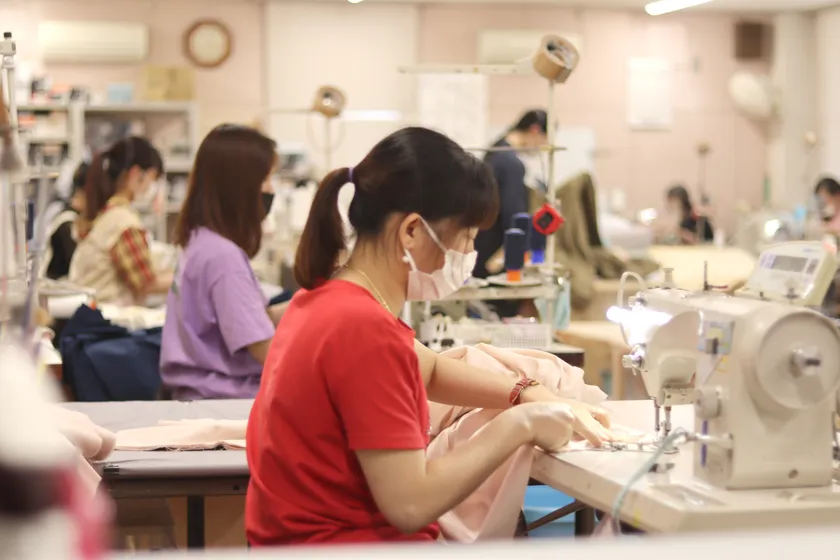 1枚1枚丁寧に布団カバー等を縫製する岩本繊維の様子