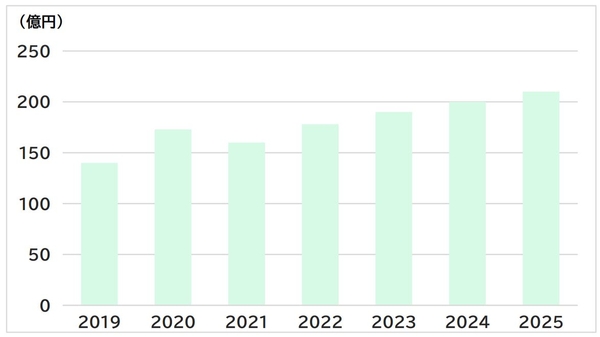 その反動から2021年は大幅に市場が縮小したが、2022年は成長に転じ、2020年をやや上回る市場規模になったと推定される。今後も市場の拡大が続くと見込まれる。2023~25年にかけて年間5%増程度の堅調な拡大が続くと予測する。