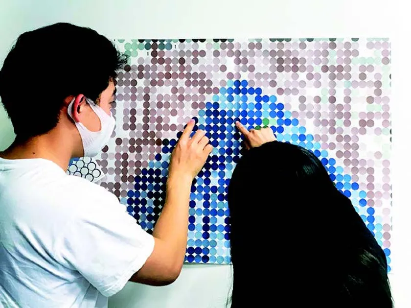 カラボギャラリーは、国内初の「色」をテーマとした常設ギャラリー。アート作品を通じて「色」の科学的・芸術的な面白さや奥深さを体験することができる。