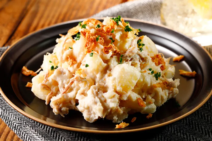 北海道産ばれいしょ(さやか)と北海道コンビーフを使用したポテトサラダです。素材の甘味と旨味が調和した、後を引く美味しさをお楽しみいただけます。香りとコクがより際立つ焼き込みメニューにもおすすめです。