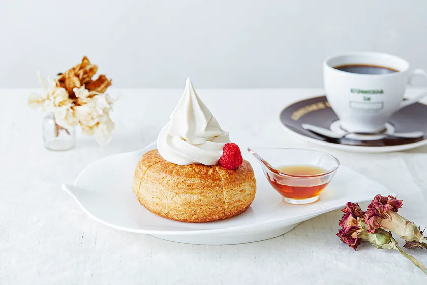 1977年の販売開始から、44年。コメダの看板デザートとして多くの皆さまに愛されてきた「シロノワール」。「KOMEDA is □」のオープン当初より、多くのお客さまから寄せられたシロノワール販売希望の声にお応えして、原材料をすべてプラントベースとした「プラントベース シロノワール」を完成させました。長年のコメダのパンづくりのノウハウを活かして、植物性の原料でおいしいデニッシュパンができるよう試行錯誤を重ね、およそ一年をかけて開発。メープルシロップやソフトクリームがしっくり染み込むよう、従来のシロノワール同様、自社パン工場の職人がデニッシュ生地を手作業で折りたたみ64層に仕上げています。丁寧に焼き上げたデニッシュパンの上には、豆乳で作ったソフトクリーム、さらに上からサトウカエデの樹液100%のメープルシロップ、ラズベリーを添えて仕上げました。ソフトクリームのくちどけの良さと豆乳のやさしい味わい、メープルシロップのまろやかな甘さが癖になる一品です。ほかほかのデニッシュパンと冷たいソフトクリームの“温・冷”の絶妙なバランスを“いつものくつろぎの空間”で是非お楽しみください。