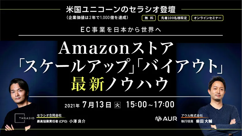 PR戦略立案、Amazonストアの運用代行、クリエイティブまで一手に担う「エンゲージメント・イノベーター」のアウル株式会社(代表:北村 俊二、本社:東京都港区、以下 アウル)は、2018年の創業からわずか2年で米国のユニコーン企業※となったThrasio(セラシオ)の日本本格進出を機に、日本法人のセラシオ合同会社(代表:二宮 一央、本社:東京都中央区、以下 セラシオ社)と共に「Amazonストア 『スケールアップ』『バイアウト』最新ノウハウ」セミナーをEC事業者向けに、2021年7月13日(火)15時より開催します。