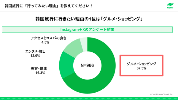 一方で、「アクセスとコスパの良さ」(4.5%)を挙げる人もおり、韓国は近くて気軽な海外旅行先として支持されていることもわかりました。