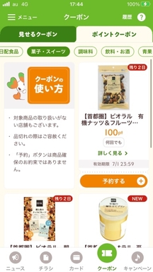 お買い物前にポイントクーポンの「予約する」を押してお買い物するだけ!お買上げ時に連携済のポイントカード利用で、後日ポイントが進呈されます。