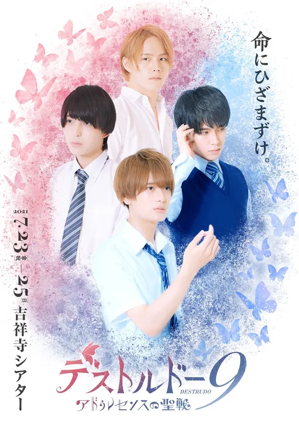 デストルドー9製作委員会は、2021年7月23日(金・祝)~7月25日(日)に吉祥寺シアターにて上演する舞台「デストルドー9~アドゥレセンスの聖戦~」の千秋楽公演ライブ配信チケットの販売を開始しました。