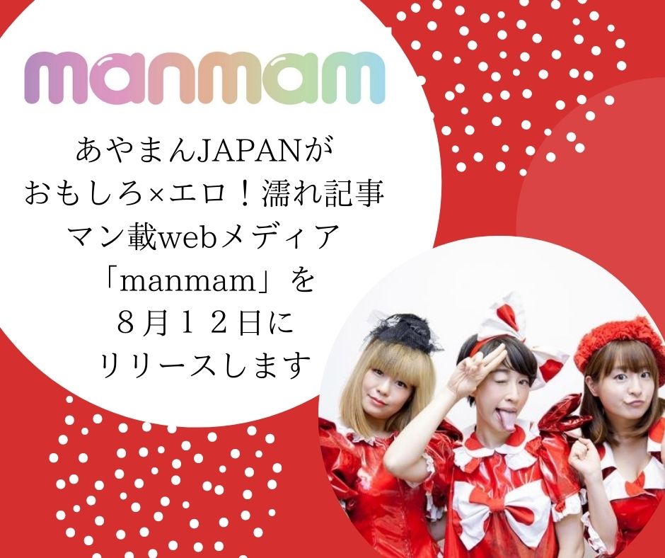 これに伴い、ストレスや不安、色々溜まっている皆様へ「あやまんの“あ”はあげまんのあ!」ということで、世界中にあげまんパワーをお届けすべく大人向けwebメディア「manmam」を8月12日に立ち上げることを発表いたします。