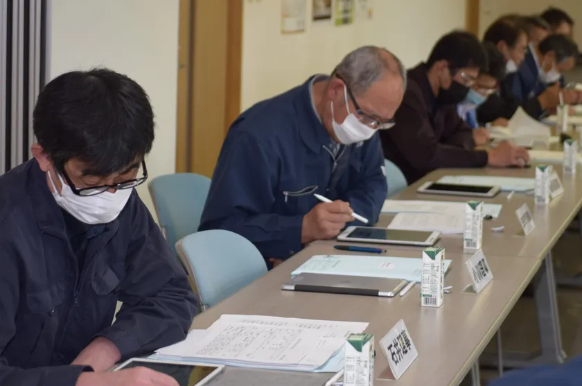 タブレットを操作する佐藤組合長
