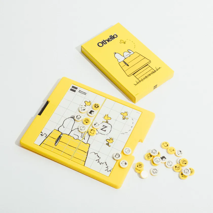 ミュージアムオリジナルデザインのオセロです。盤面にはお昼寝するスヌーピーとマス目にとまるウッドストックが、石には両面にピーナッツの仲間たちがデザインされています。