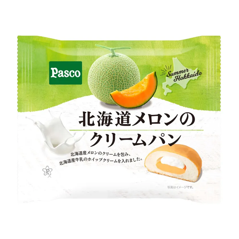 北海道産のメロンと牛乳のホイップクリームを使用したクリームパンです。メロンの甘みと芳醇な香りが強く、ホイップクリームと相性抜群です。