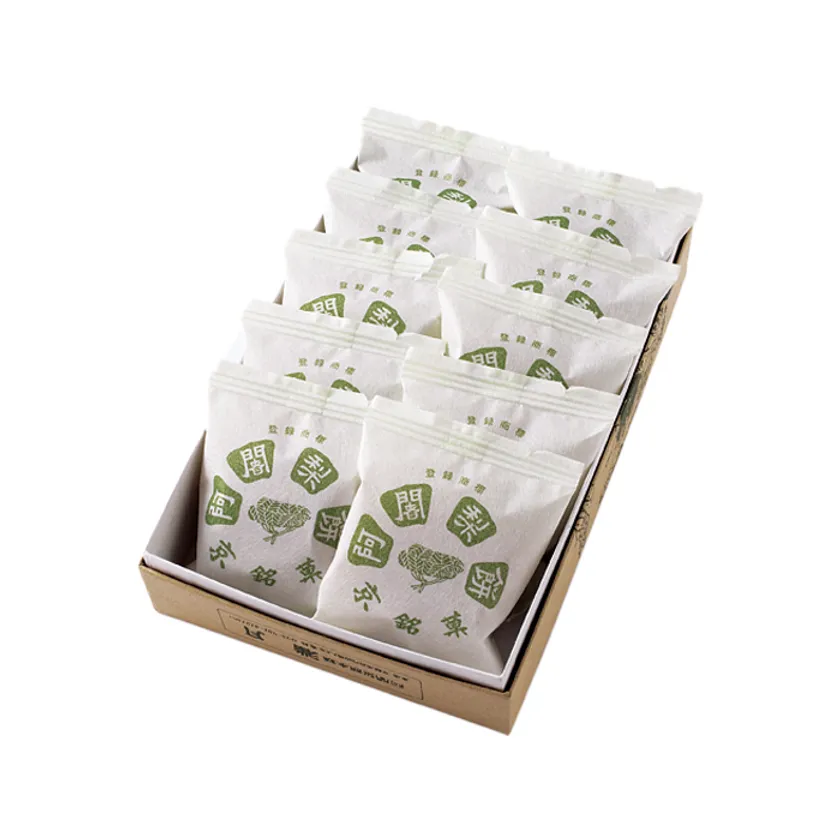 丹波大納言小豆を、さまざまな素材を練り合わせた満月秘伝の餅生地で包み、焼き上げた半生菓子です。しっとりとした皮と自家製餡が絶妙に調和し、独特の食感をお楽しみ頂ける逸品です。