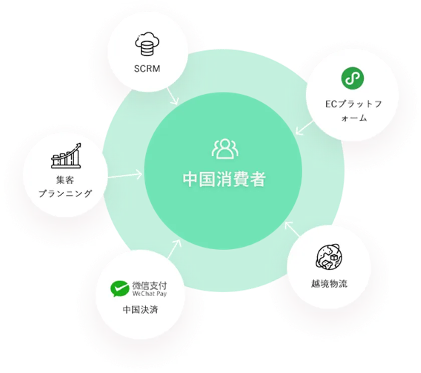 ・WeChatミニプログラムを利用した中国越境ECを行うために必要なサービスを取りそろえたサービスです。