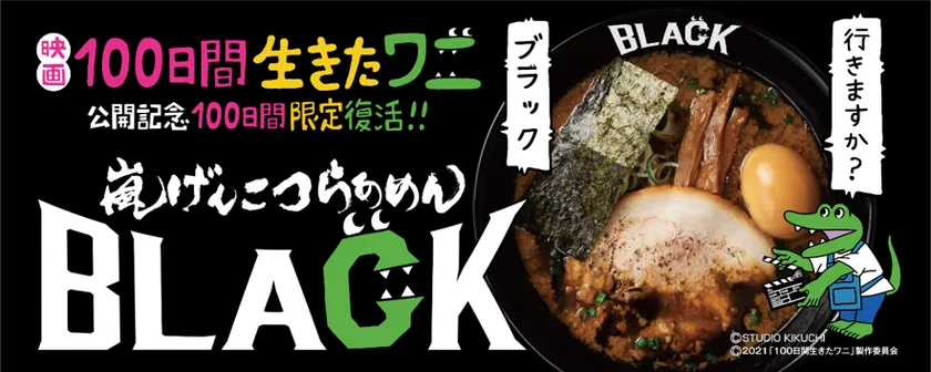 ■『嵐げんこつらあめんBLACK』と映画『100日間生きたワニ』コラボの延長決定!!