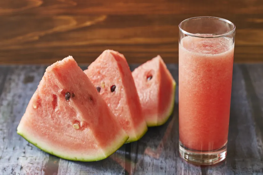 「そのまんまスイカ」または「とろける桃のスムージー」どちらかお好きなジュースを撮影して下さい。