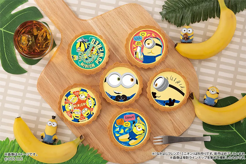 さくさくな食感のタルト生地にバナナ風味のムースを絞り、ミニオンたちがプリントされたフィルムをのせた、見て楽しい、食べておいしいタルトです。