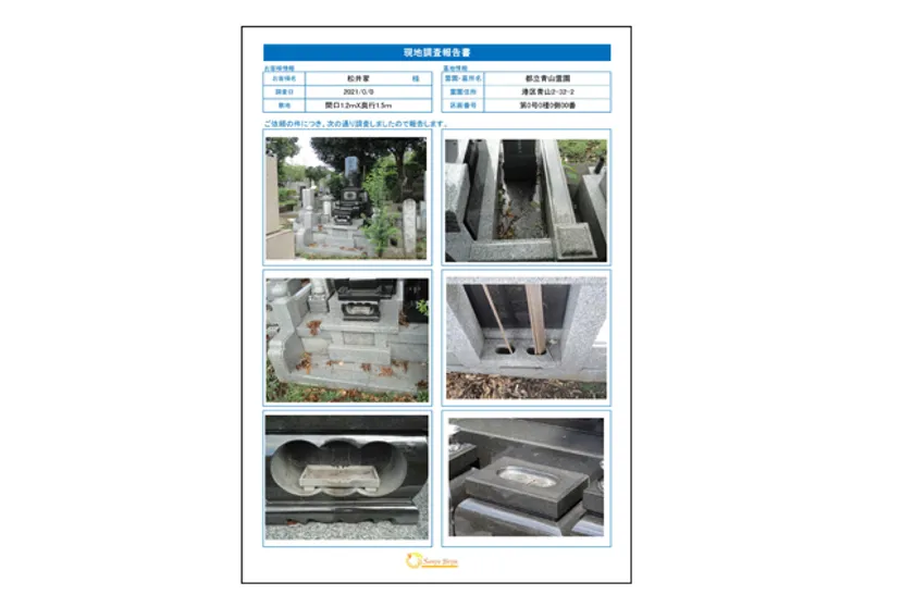 無料で現地調査後、お見積りと一緒に調査報告書をお送りします