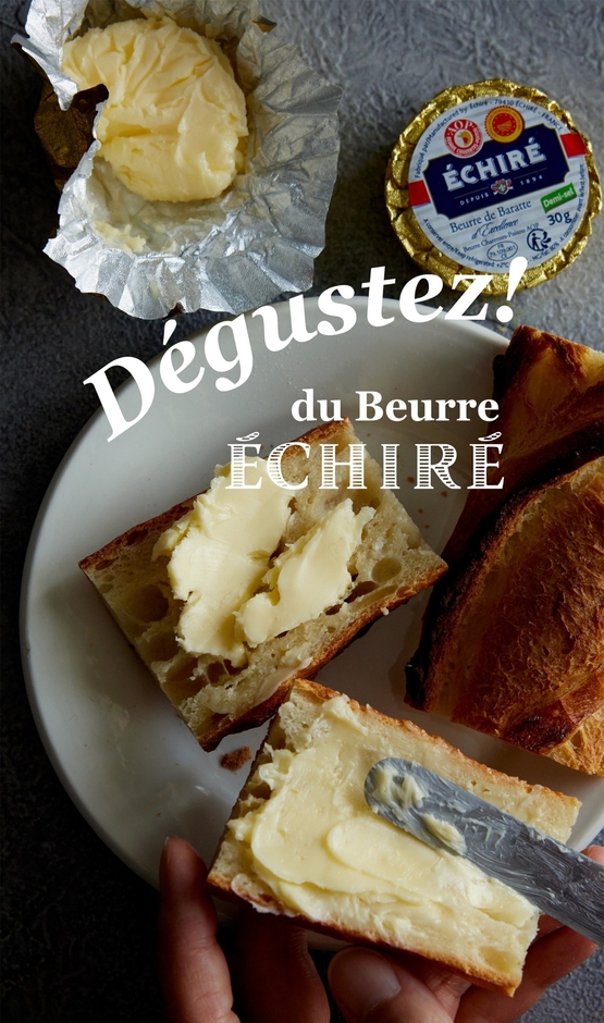 「Dégustez! du beurre ÉCHIRÉ ! (味わってみて!エシレバター)」