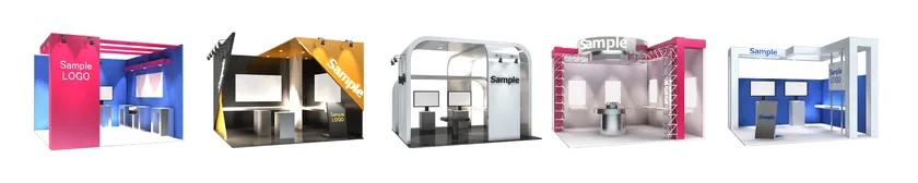 ブースは6~10デザインご用意いたします(展示会の規模でデザイン数が変わります)。各ブースはコーポレートカラーの指定やロゴマークの設置など、デザインのカスタマイズが可能です。
