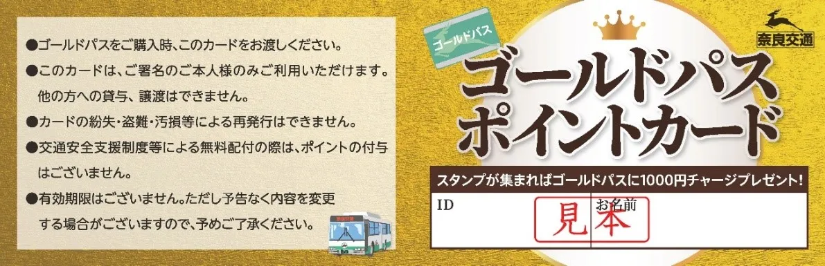 このたび当社では、ご好評いただいている「奈良交通ゴールドパス」のサービスをさらに充実させるため、新たにポイントカードの導入および、「運転免許証自主返納支援制度」の対象エリアの拡大を実施いたしました。