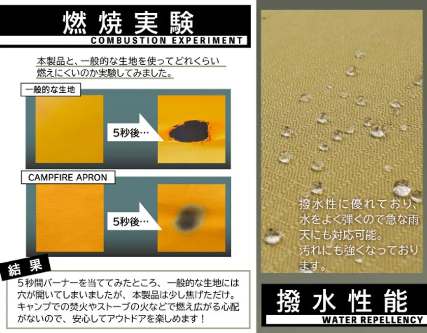 <キャンパー必見> 消防士の防火服に採用されている スーパー繊維【アラミド繊維】を採用した 超強力&高難燃性の最強の難燃エプロン 【CAMPFIRE APRON】が発売!