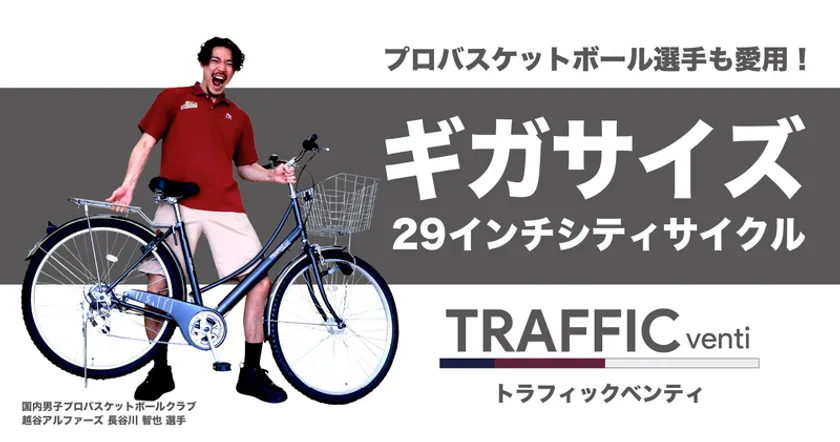 好評発売中のギガサイズ29インチ自転車 「トラフィックベンティ」を 国内男子プロバスケットボールクラブ「越谷アルファーズ」に提供