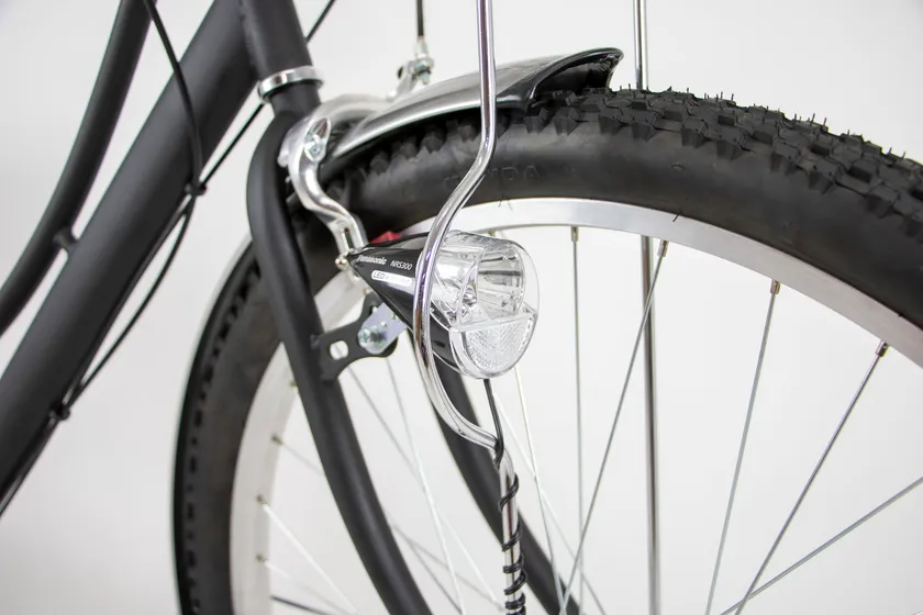 トラフィックベンティは、マウンテンバイクなどに使われるタイヤのサイズである「29インチ」の巨大タイヤを使用した超ビッグサイズの自転車(シティサイクル)です。シティサイクルのタイヤサイズは26インチか27インチが一般的ですが、身長が高い人にとってはサドルとペダルの間隔が狭く、ペダルを漕ぐ時に窮屈に感じて漕ぎづらいという声が上がっていました。