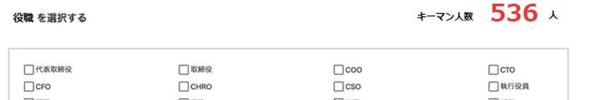 キーマン検索機能を使えば、簡単な操作で、決裁権を持ったキーマンに絞り込み検索が可能です。