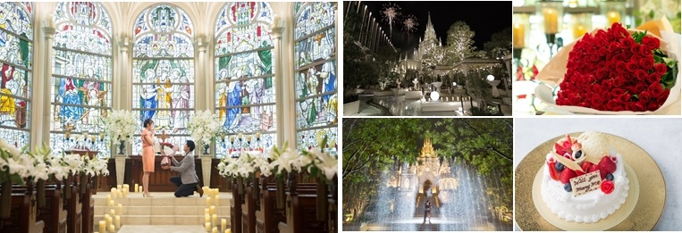 レストランで専用のプロポーズディナー、神聖なチャペルでの感動的なプロポーズシーン、大切な日のホテルスイートルームでの宿泊に至るまで、プロポーズをおふたりの“新しい記念日”とするべくドラマティックに演出する超豪華なプロポーズプランが誕生。ブライダルを専門に手がけ培ってきたプロデュースノウハウを生かして、プロポーズにおけるすべてのシーンをドラマティックに演出し、サプライズ(驚き)を超える、アメージング(素晴らしい)プロポーズを叶えます。