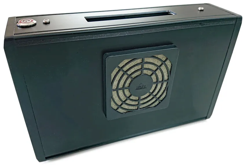 本製品の両面にある吸込口からアクリル板では回り込んでしまうエアロゾルを帯電フィルターでキャッチし、ウイルスなどをフィルターでろ過します。