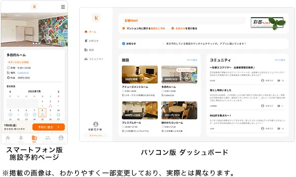 今回の刷新では、「彩都NAVI」にスマートフォン版(※4)を導入したほか、一部施設においてスマートロック(※5)との連携で予約した施設をスマートフォンで解錠施錠ができるシステムを導入し、より便利にコミュニティ活動の場をご利用いただける仕組みを取り入れました。従来はマンション管理員がご予約者様に鍵を対面でお渡ししていましたが、スマートロックの設置により、スマートフォンアプリで発行されたワンタイムパスを使用して、非対面/非接触で鍵を受け取ることが可能になりました。