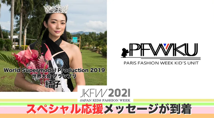 日本初開催となるパリ・コレクション(キッズユニット)公式認定『Japan Kids Fashion Week 2021』(以下 JKFW2021)が、2021年10月4日(月)・5日(火)に名古屋能楽堂で開催されます。この度、特別講師に『World Supermodel Production 2019(WSP2019)』世界大会グランプリのトップモデル 結子が決定いたしました。またパリ・コレクション(キッズユニット)フランス本局から、応援メッセージ動画が届きましたことを、お知らせします。