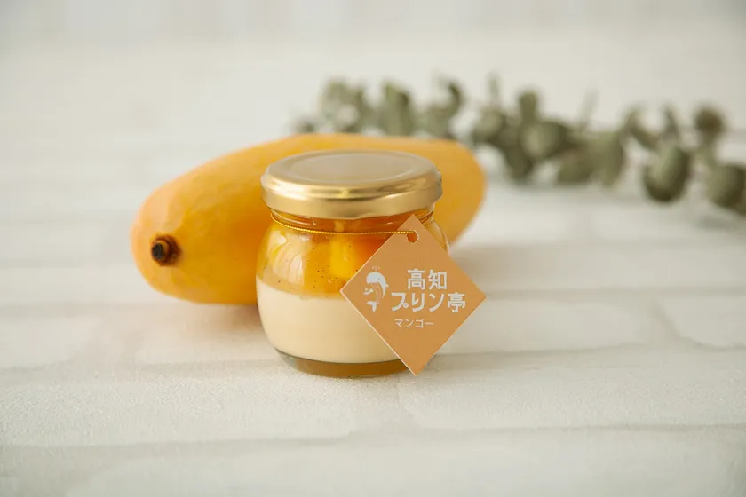 「夏季限定、マンゴーをそのまま使用した贅沢プリン」
