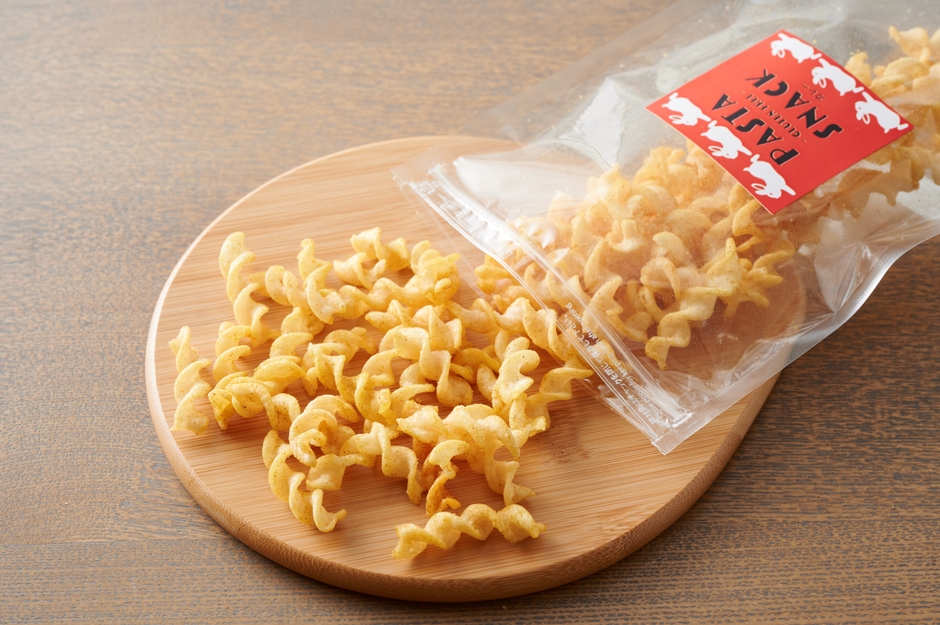 カリカリ食感!グルテンフリーの米粉のパスタスナック。