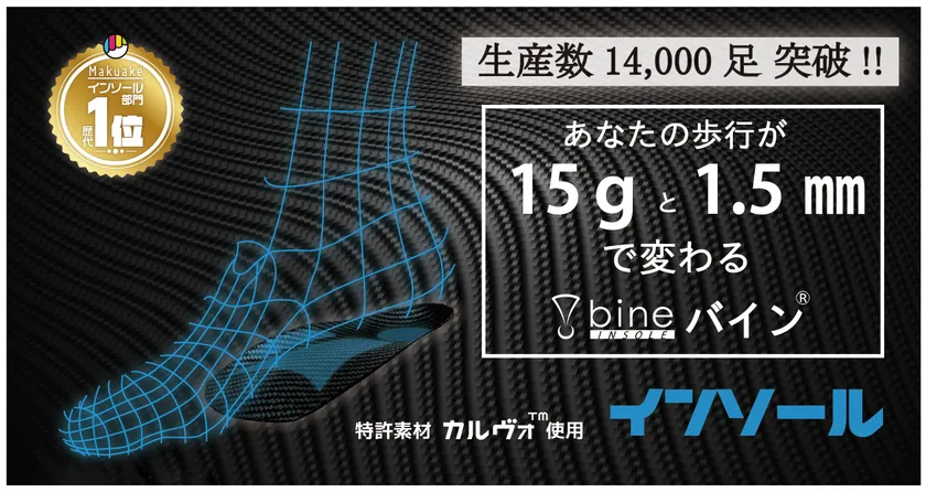 歩行パフォーマンスを“15g、1.5mm”で劇的に向上させる インソール『bine(バイン)』が生産数14,000足突破!!