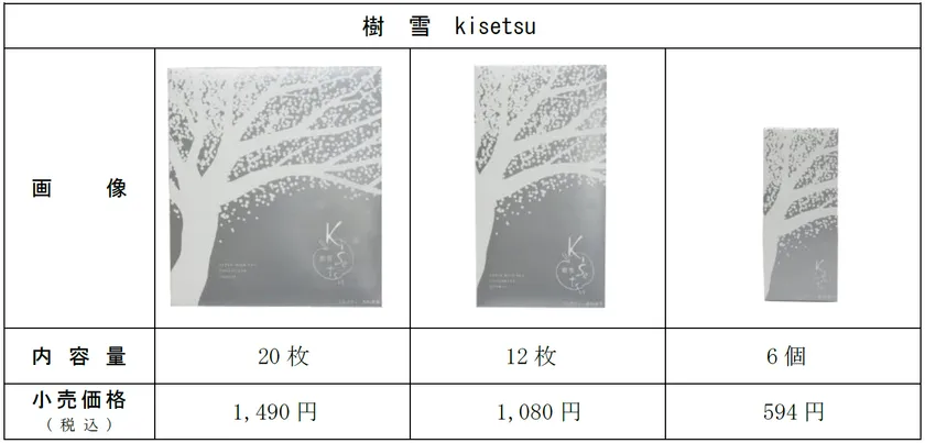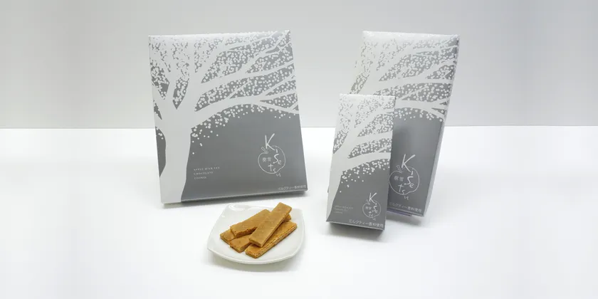 『樹雪 kisetsu』はコロナ禍による観光市場の低迷が続く中、少しでも青森を感じることのできるお菓子を作りたいとの思いで企画。原材料に青森県産の「りんご、はちみつ、うるち米(青天の霹靂)」を使い、ミルクティーフレーバーで仕上げたアップルミルクティー味のお菓子です。クッキーとチョコレートを重ね合わせたクリスピー食感のチョコウエハースクッキーで、お家時間をお楽しみいただけます。